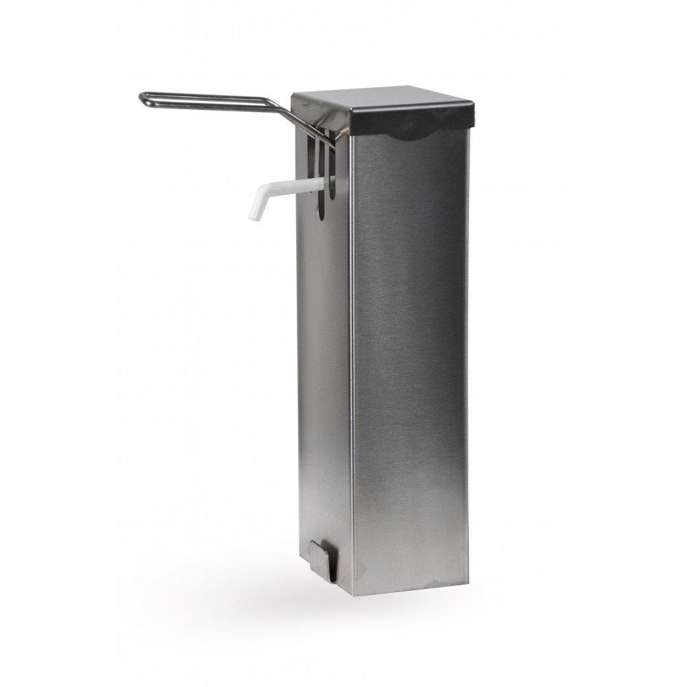 - Міцна і довговічна конструкція нержавіючої сталі AISI 304 — дозатор виготовлений з високоякісної нержавіючої сталі AISI 304, що забезпечує стійкість до корозії, механічних впливів і агресивних дезінфікуючих засобів.