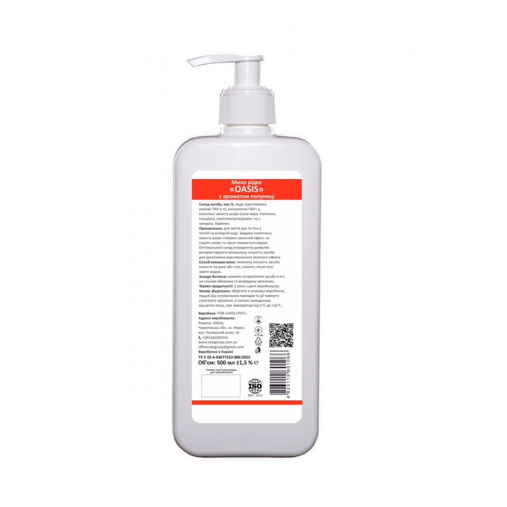 Мило рідке "NATA-OASIS" з ароматом полуниці, флакон 500 мл з дозуючим носиком