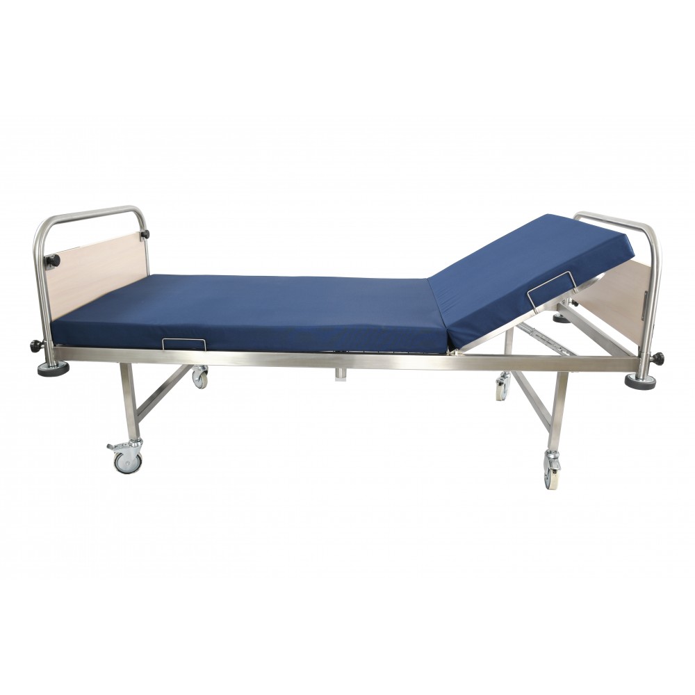 - Двосекційне регульоване ложе - складається з двох частин: одна фіксована, інша — з регулюванням кута нахилу в діапазоні 0–65° для зміни положення тулуба пацієнта. Основа ложа — зварна сітка з оптимальним кроком прутків, що гарантує вентиляцію та зручність.