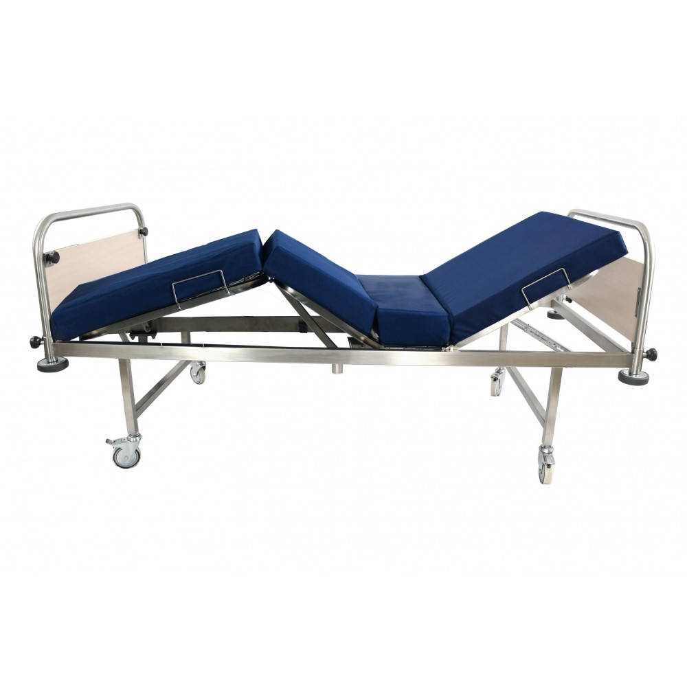 - Чотирисекційне регульоване ложе - складається з чотирьох частин: спинна секція призначена для підняття верхньої частини тіла пацієнта та регулюється від 0° до 60°, поперекова секція фіксована, забезпечує стійкість та рівномірний розподіл ваги пацієнта, стегнова та ножна секції регулюються в діапазоні 0°–45°, що дозволяє покращити циркуляцію крові в нижніх кінцівках.