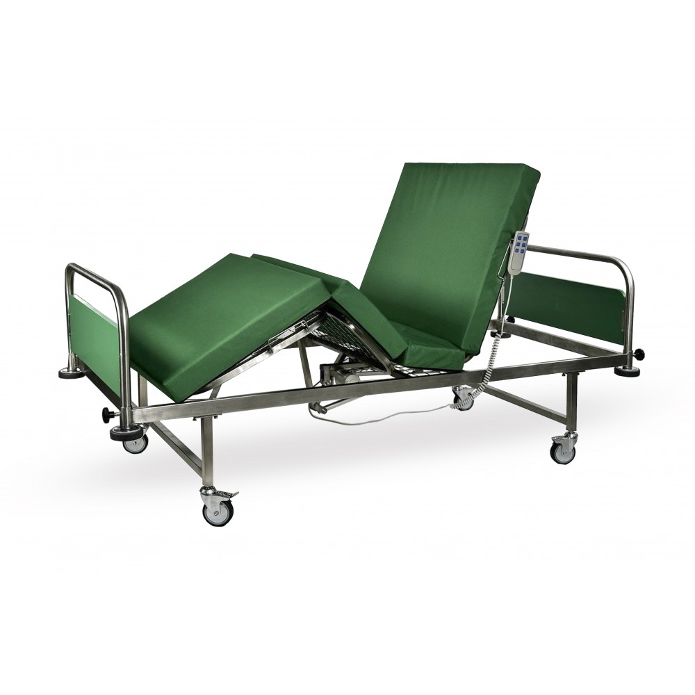 COMBO HBME-4-NATA SL — це пересувне електричне ліжко з чотирисекційним ложем, розроблене для забезпечення максимальної безпеки та комфорту пацієнтів у період лікування та тривалої реабілітації в умовах стаціонарного медичного закладу. Міцна конструкція з нержавіючої сталі, ергономіка, функціональність та відповідність сучасним санітарно-гігієнічним вимогам МОЗ України роблять це ліжко ідеальним вибором для оснащення медичних установ.