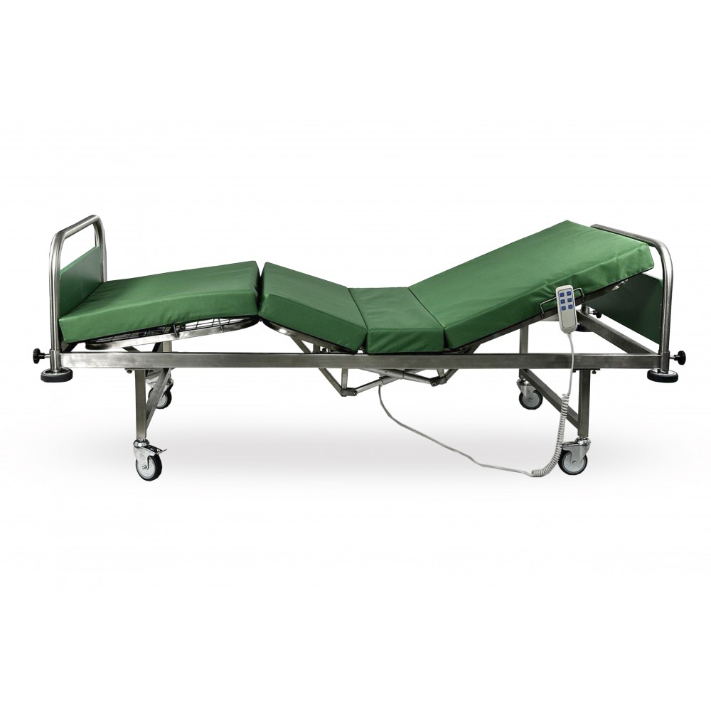 - Електричне регулювання - секції ліжка регулюються електроприводом, що дозволяє персоналу змінювати положення пацієнта без фізичних зусиль. Усі двигуни мають захист від вологи, відповідають вимогам медичної безпеки.