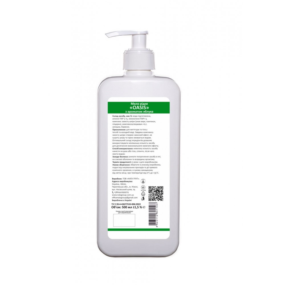 Мило рідке "NATA-OASIS" з ароматом яблука, флакон 500 мл з дозуючим носиком