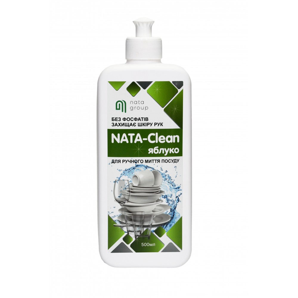 Засіб мийний "NATA-Clean для ручного миття посуду" з ароматом яблука, флакон 500 мл з пуш пулом або дозуючим носиком