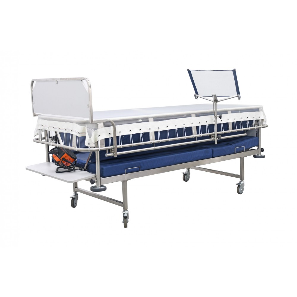 Сочетает универсальность использования и простоту трансформации, позволяя применять его как стандартную больничную кровать или как специализированную систему для лечения ожогов до 70% кожных покровов. Конструкция соответствует современным медицинским стандартам, обеспечивает эффективность терапии и безопасные условия для пациента. . Благодаря использованию износостойких материалов кровать рассчитана на интенсивную эксплуатацию, легко поддается дезинфекции и сохраняет долговечность даже при ежедневном использовании в условиях стационара.