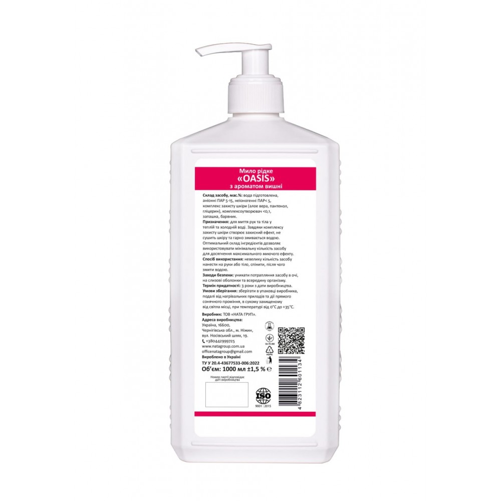 Мыло жидкое "NATA-OASIS" с ароматом вишни, флакон 1000 мл с дозирующим носиком