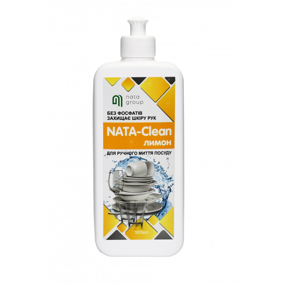 Средство моющее «NATA-Clean для ручного мытья посуды» с ароматом лимона, флакон 500 мл с пуш-пулом или дозирующим носиком