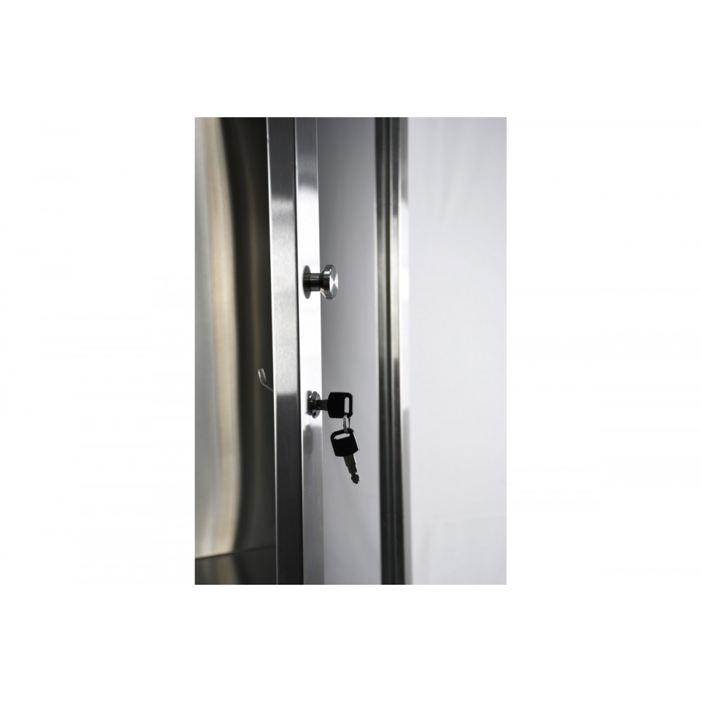 - Прозрачная дверца для быстрого доступа - дверца выполнена по принципу «сэндвич» из нержавеющей стали и вставленным стеклом, что обеспечивает визуальный контроль содержимого без необходимости открывать шкаф.