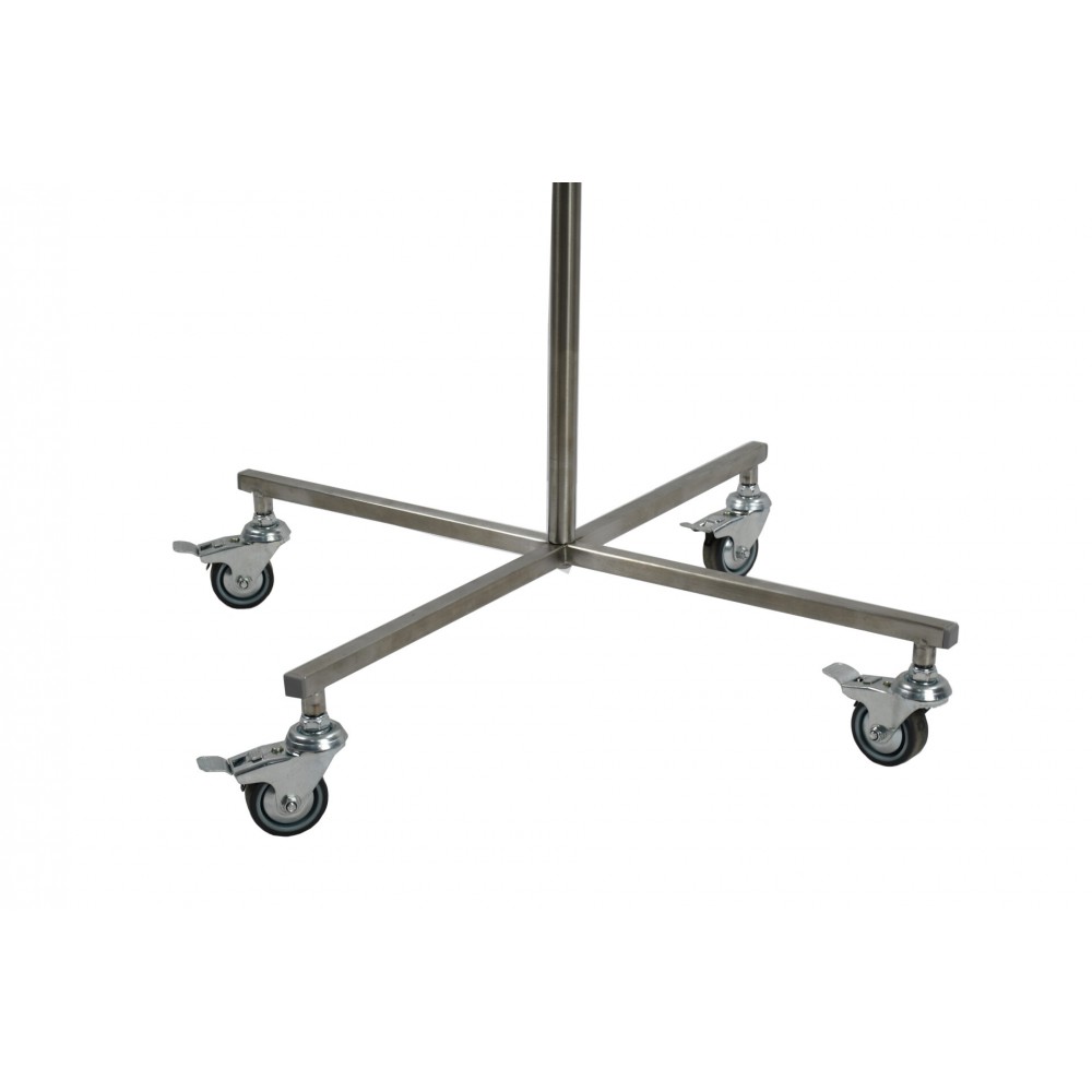 - Конструкция из нержавеющей стали AISI 304 - штатив изготовлен из высококачественной нержавеющей стали марки AISI 304, которая обладает высокой устойчивостью к коррозии, воздействию дезинфицирующих средств и механическому износу, что гарантирует долговечность и сохранение внешнего вида даже при интенсивном ежедневном использовании.