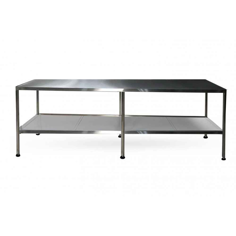 - Прочная и износостойкая конструкция - стол изготовлен из высоколегированной нержавеющей стали марки AISI 304, что гарантирует устойчивость к коррозии, механическим повреждениям и воздействию агрессивных дезинфицирующих средств. Материал сохраняет эстетический вид и функциональность даже при интенсивной эксплуатации.