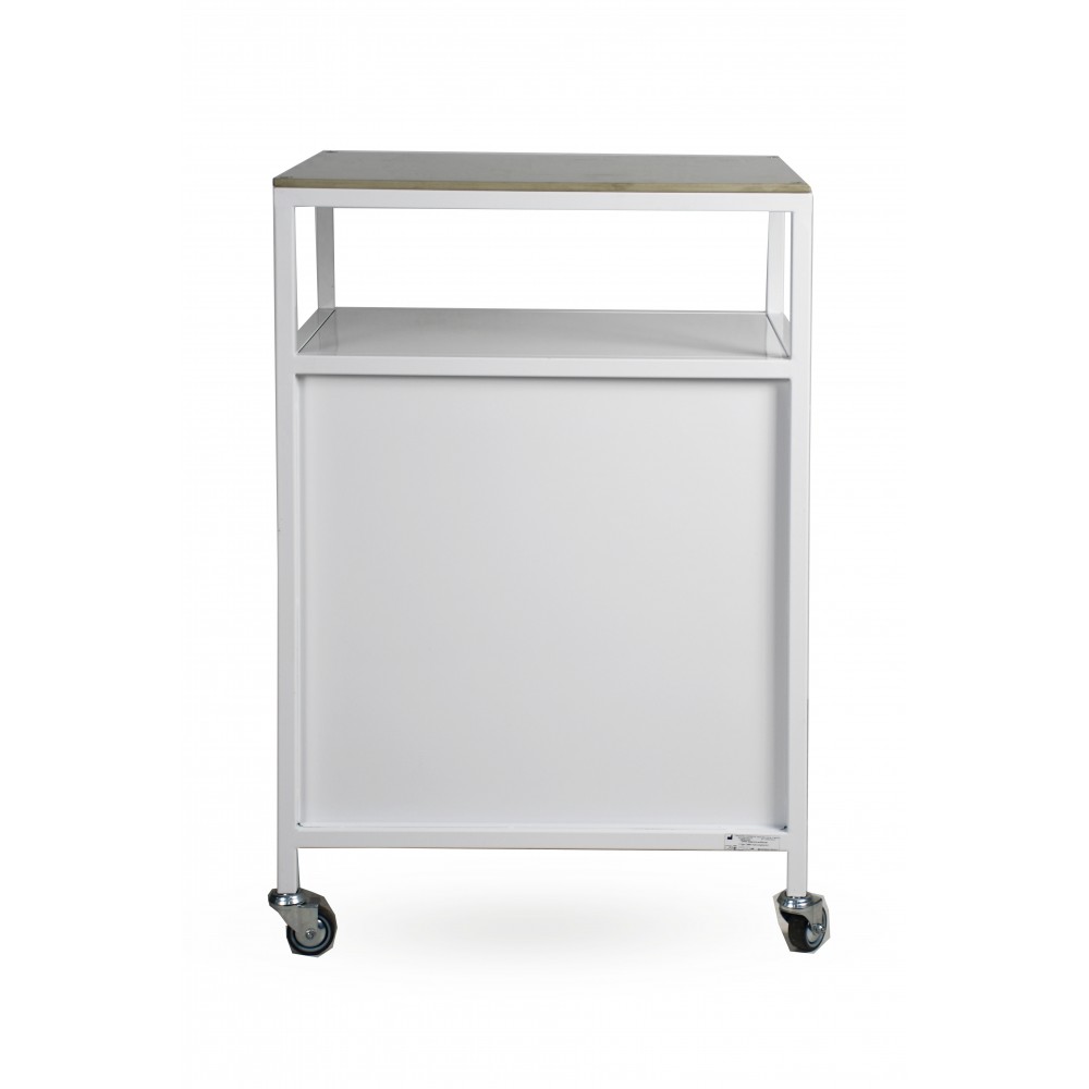 - Мобильность и удобство в использовании - оснащена прочными металлическими колесами с резиновым покрытием, обеспечивающими плавное передвижение. Два колеса оснащены блокировочным устройством для фиксации.