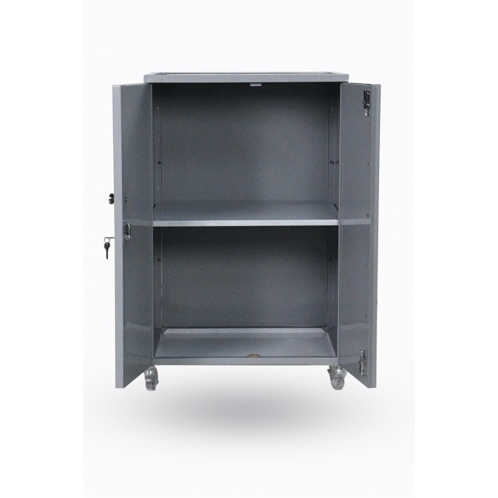 - Мобильность и удобство в использовании - оснащена прочными металлическими колесами с резиновым покрытием, обеспечивающими плавное передвижение. Два колеса оснащены блокировочным устройством для фиксации.