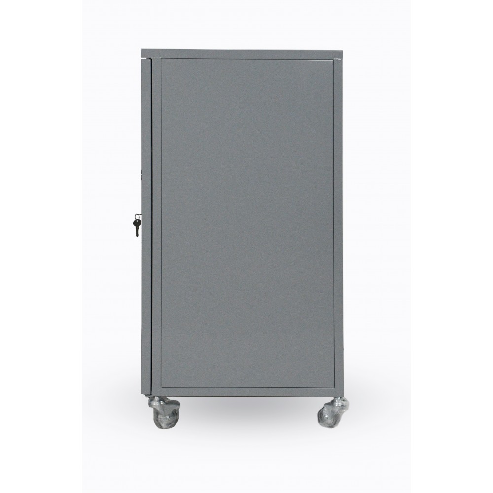 - Функциональная компоновка - тумба имеет одно общее внутреннее отделение, доступ к которому осуществляется через две металлические дверцы. Внутри расположена регулируемая по высоте съемная полка, что позволяет удобно организовать пространство для хранения.