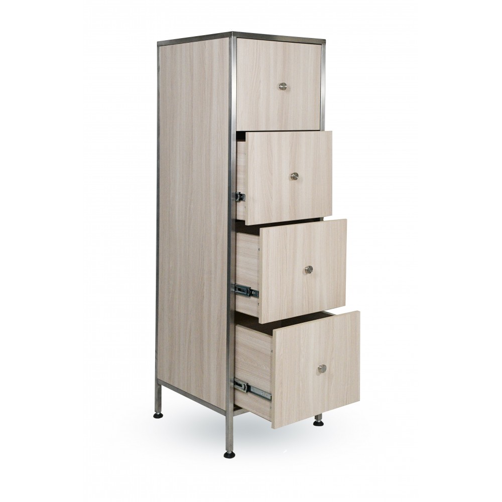 - Функціональне компонування - шафа оснащена чотирма висувними шухлядами, що забезпечують ефективну організацію зберігання. Всі шухляди встановлені на телескопічних направляючих — для плавного та безшумного відкривання.