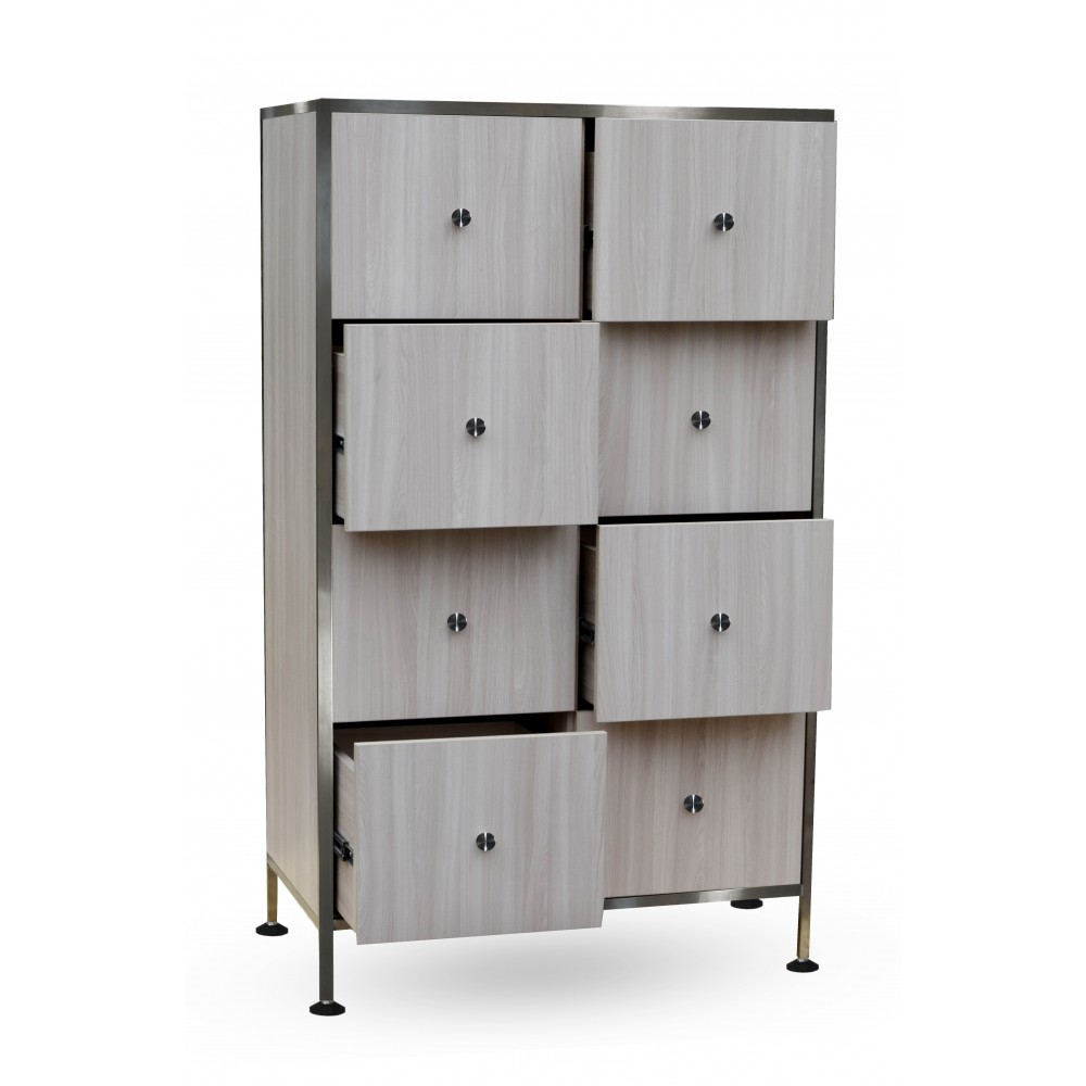 - Функціональне компонування - шафа оснащена восьмома висувними шухлядами, що забезпечують ефективну організацію зберігання. Всі шухляди встановлені на телескопічних направляючих — для плавного та безшумного відкривання.