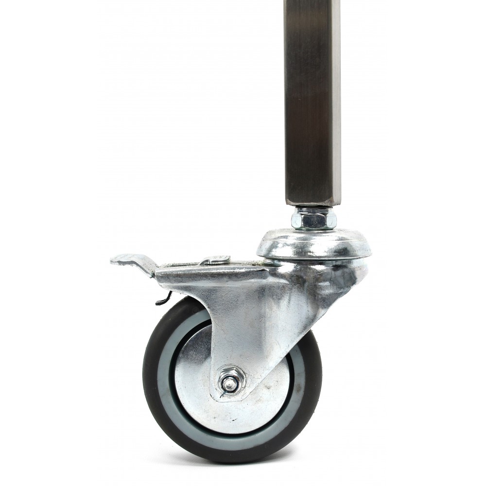 - Мобільність та зручність у використанні – оснащений міцними металевими колесами з гумовим покриттям, що забезпечують плавне пересування. Два колеса оснащені блокувальним пристроєм для фіксації.