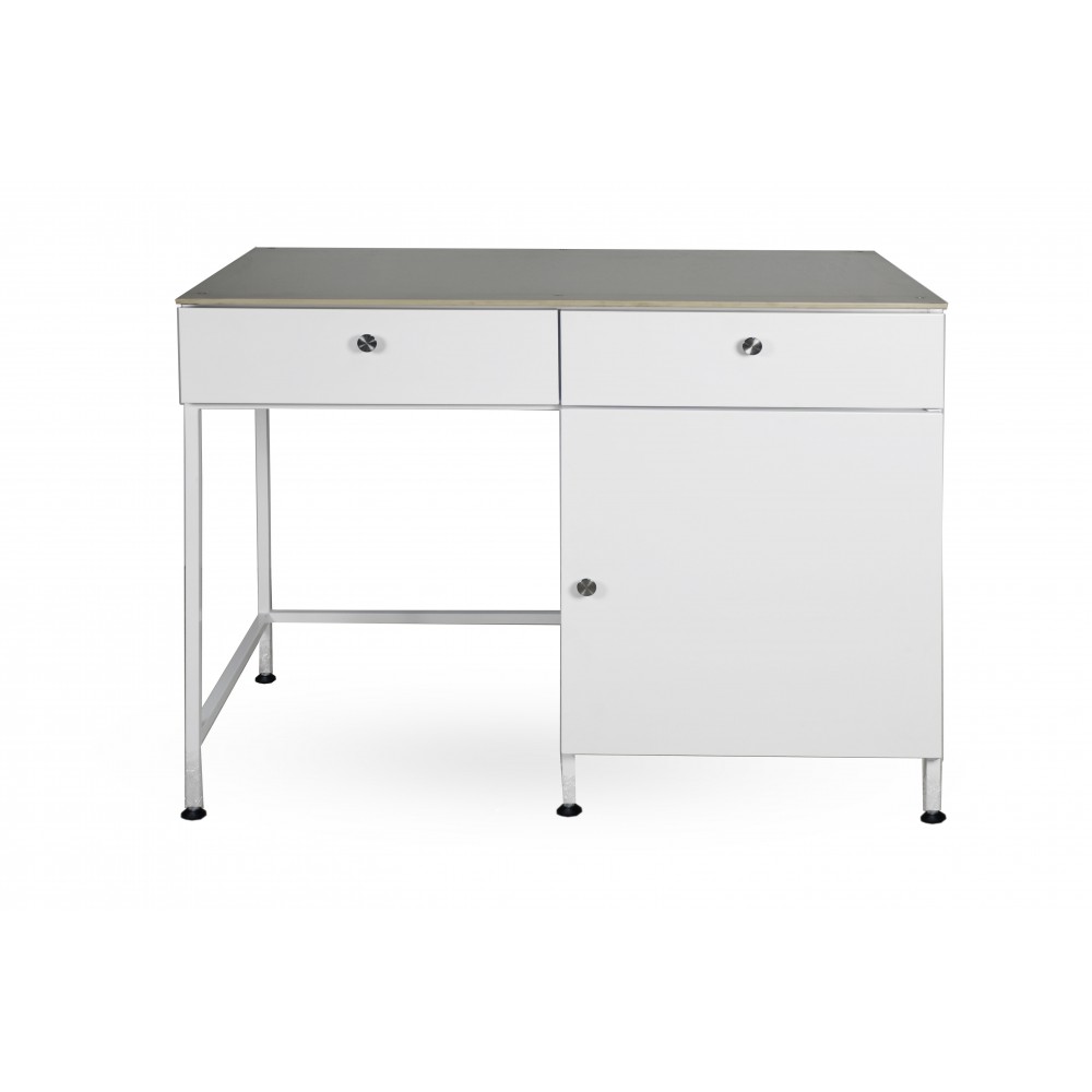 - Міцна та зносостійка конструкція – каркас столу, тумба та шухляди виготовлені з металевого профілю з покриттям полімерної порошкової антибактеріальної фарби, стільниця - з хімічно стійкого пластику, що витримує тривале використання з агресивними реагентами, дезінфікуючими засобами, кислотами та лугами. Матеріал зберігає естетичний вигляд і функціональність навіть за інтенсивної експлуатації.
