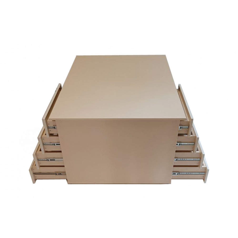 - Функціональність зберігання — дві тумби з чотирма шухлядами, кожна забезпечує достатній обсяг для впорядкованого зберігання робочих матеріалів.