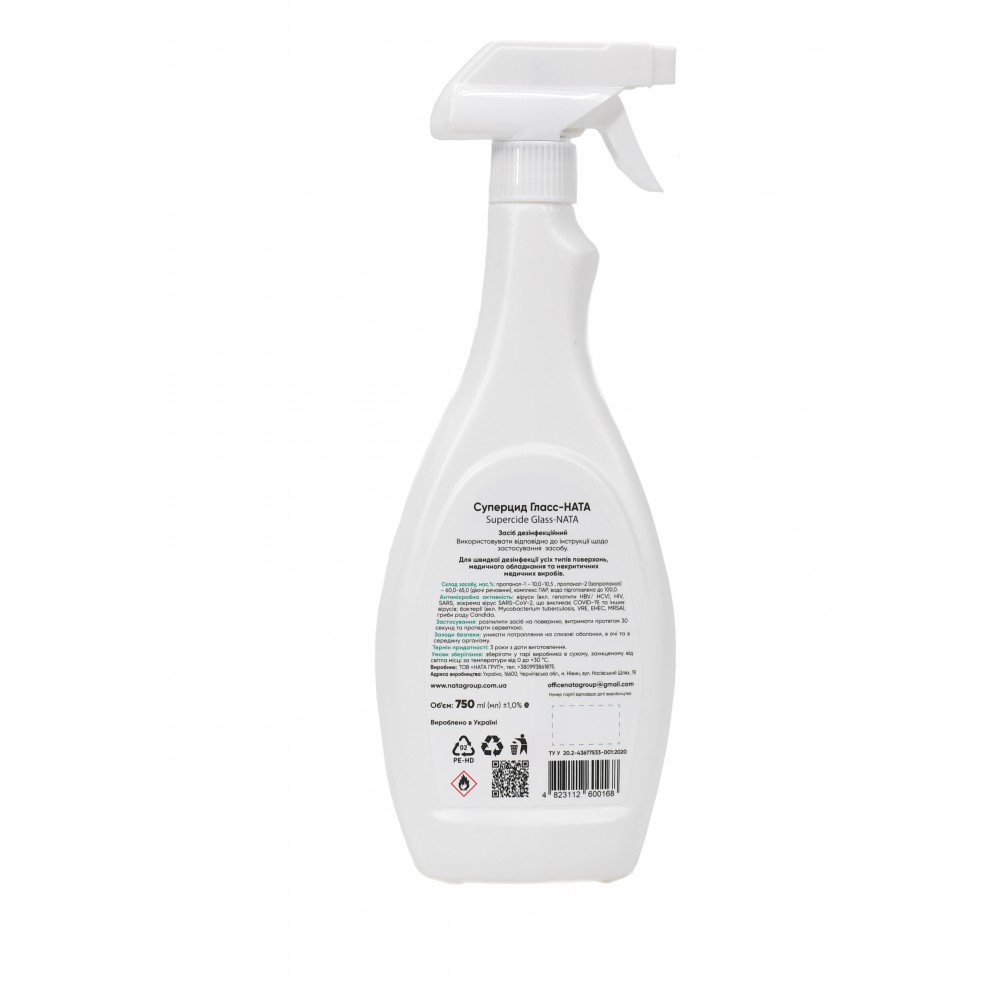 Засіб дезінфекційний "Суперцид Гласс-НАТА (Supercide Glass-NATA)" флакон 750 мл тригер